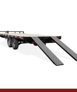 - 20-Foot Flat Deck Design: With a spacious 20-foot deck, you’ll have plenty of room to transport larger items or multiple loads in one trip, increasing efficiency and reducing downtime. The deckover design allows for the entire width of the trailer to be utilized, making it ideal for wider loads.